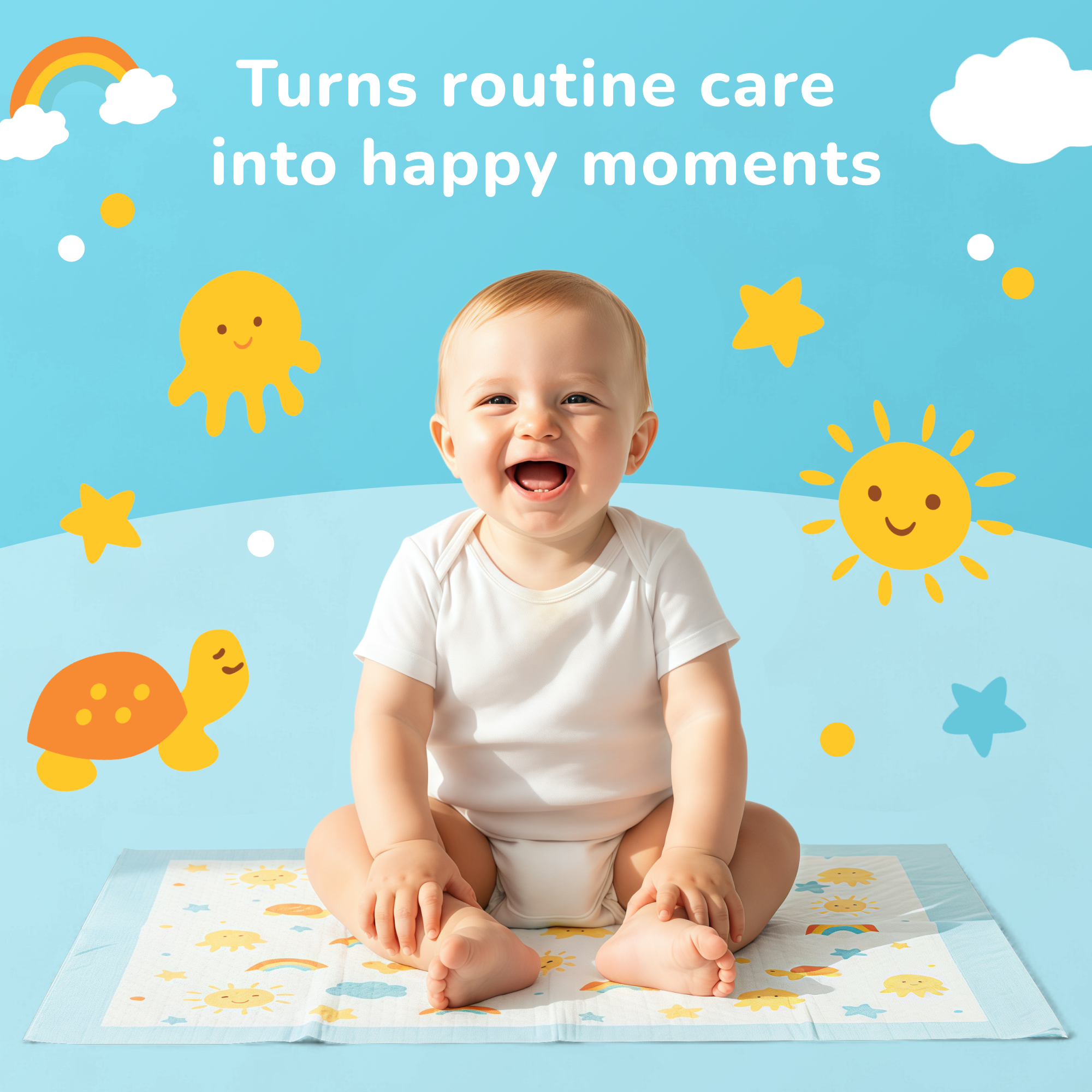 Mess-free moments start here! SunnyGuard™ underpads combine soft comfort, leakproof protection, and fun designs that make kids smile.